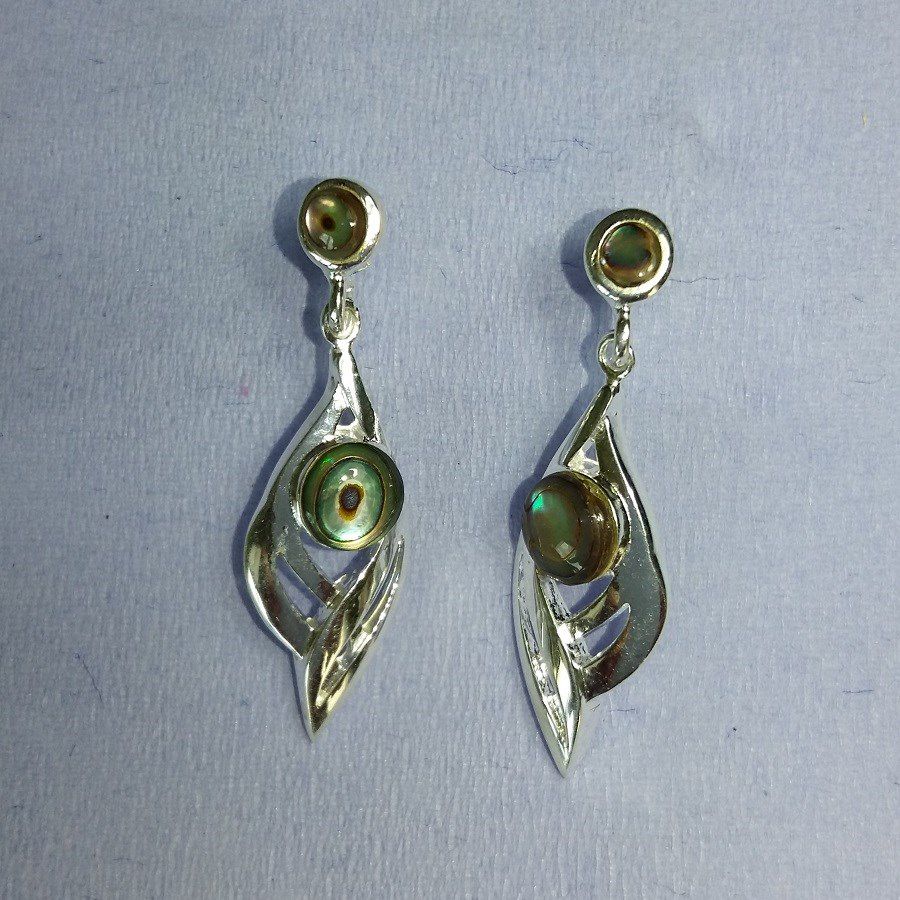 Brinco prata modelo folha vazada com círculo abalone.Medidas: 2,8 cm de comprimento e 1 cm de largura.(Obs: Todas as medidas são aproximadas e baseadas nas extremidades maiores dos produtos).